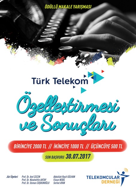 BildiÄŸiniz üzere; DerneÄŸimizce Türk Telekomünikasyon A.Åž’nin özelleÅŸtirmesinin, teknolojik, ekonomik, sosyal ve hukuki açılardan ülkemize, biliÅŸim/telekomünikasyon sektörüne yaptığı olumlu ve olumsuz etkilerinin ortaya konulması amacıyla “Türk Telekom’un ÖzelleÅŸtirilmesi ve Sonuçları” konulu bir makale yarışması düzenlenmiÅŸti.